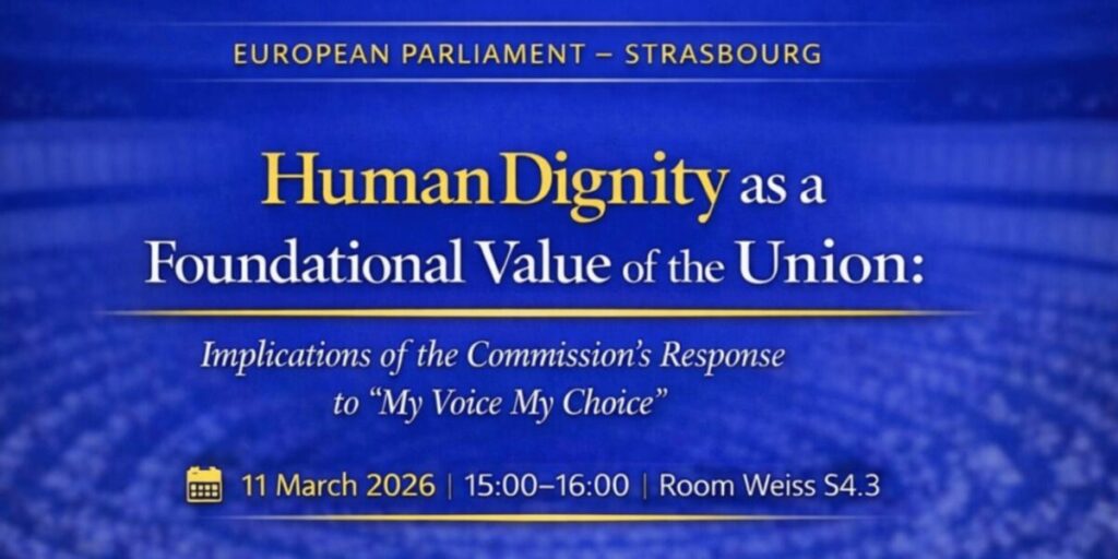 Keď poslanci Európskeho parlamentu, právnici a zástupcovia občianskej spoločnosti hovoria jedným hlasom, zvyčajne ide o vážnu vec. Tentoraz to bola odpoveď Európskej komisie na iniciatívu „My Voice, My Choice“ a otázka, kam sa posúva chápanie ľudskej dôstojnosti v Európskej únii. O týchto témach sa diskutovalo 11. marca 2026 na podujatí v Európskom parlamente v Štrasburgu.